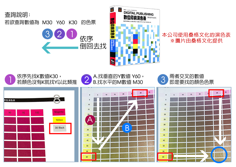 為台灣商業印刷最常用的顏色標準,演色表有多間廠商出版,但查詢方式大同小異。